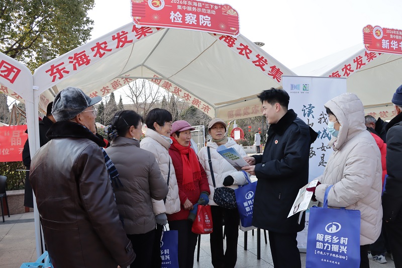 为提升人民群众法治意识,助力乡村振兴建设,2月7日,东海县人民检察院以县“三进城”“三下乡”集中服务示范活动为契机,组织干警前往县人民广场开展法律宣传服务。